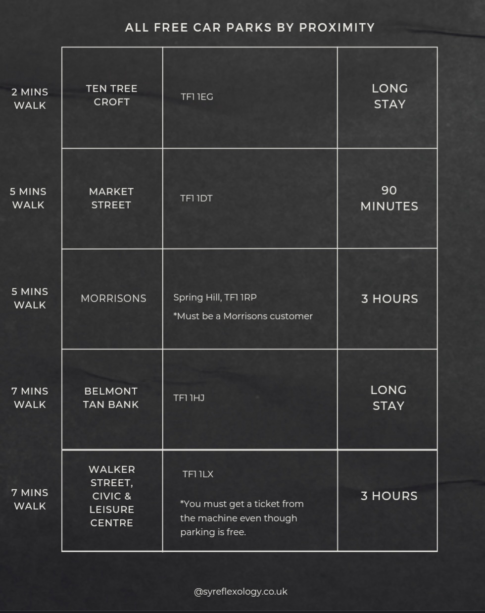 Relocating to a new area can be both exciting and challenging. As a Reflexologist who is moving services to Wellington, Telford, I understand that finding convenient parking can be a major concern for my clients. To make the transition smoother and reduce any parking-related anxiety, I’ve thoroughly researched the best FREE parking options in Wellington. Here’s a comprehensive guide to help you find the perfect spot, ensuring your visit is as relaxing as your reflexology session.