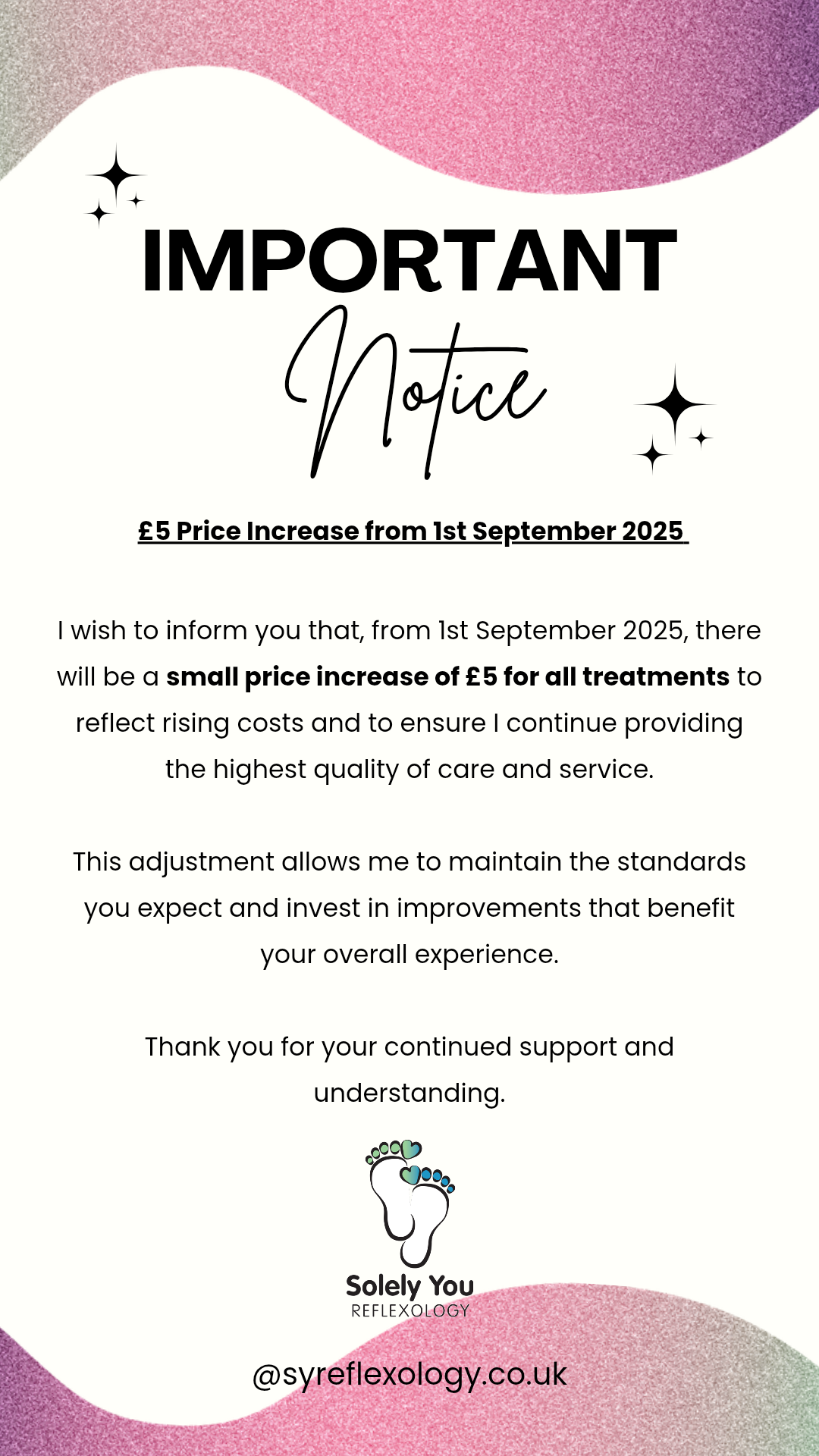 Specialist Reflexology: I specialise in pregnancy, lymphatic drainage, and menopause support reflexology. These require targeted focus on reflex areas linked with those systems. In-depth physiological knowledge helps in adapting treatments for these specific conditions.
